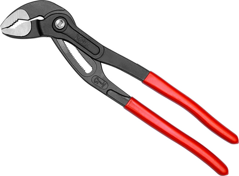Клещи переставные с механизмом быстрой фиксации Voll Cobra 12 (300 мм), CrV (Волл Кобра 12 (300 мм), ЦрВ) предназначены для ремонта и монтажа трубопровода и сантехники, а также в других строительных работах, где необходимо зажимать предметы разного диаметра до 64 мм.